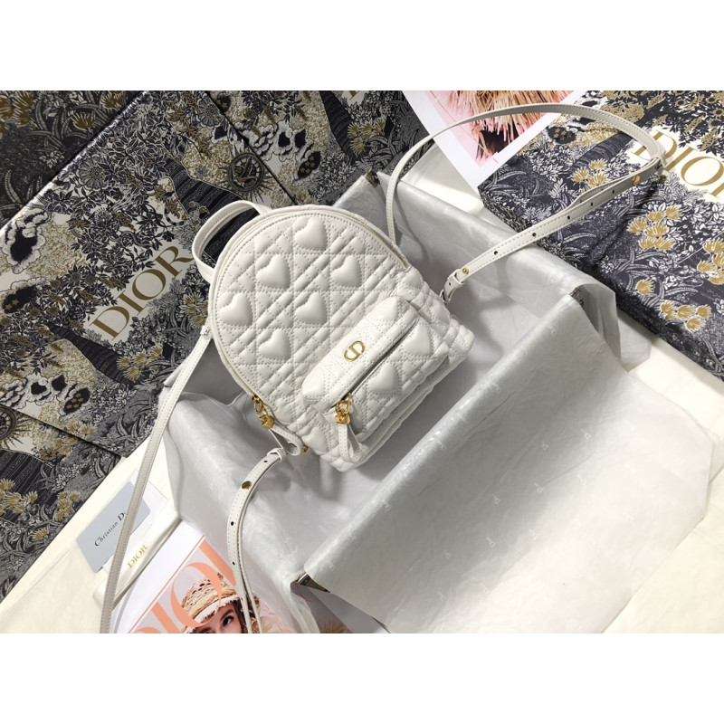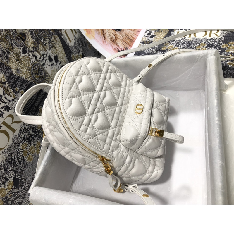 DetailCannage topstitching, 'CD' logo on front pockets and zip closure, and subtle antiqued gold-finish metal rings. Convenient for hooking small leather goods from the collection. With two adjustable shoulder straps, it can be carried on both shoulders, or one shoulder strap can be removed to carry it on one shoulder or crossbody.