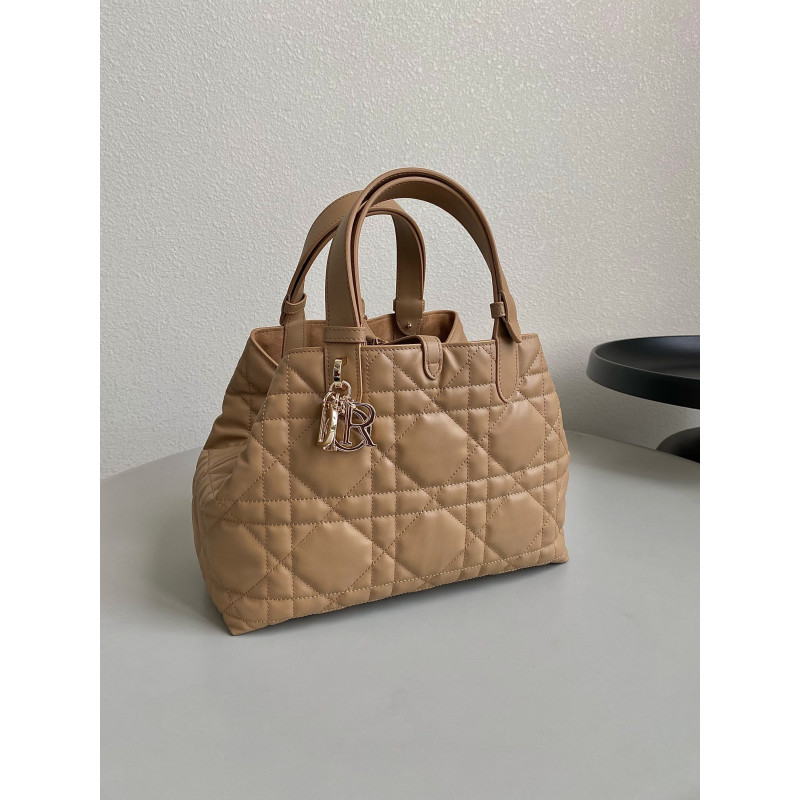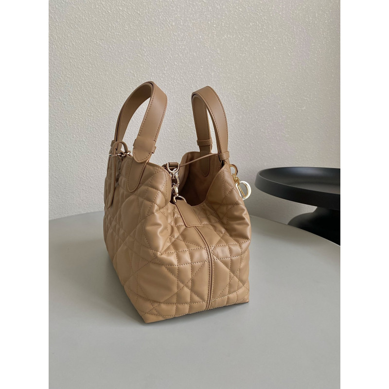 DetailOversized cannage pattern and the customary CD buckle, unlock the buckle to change from a square bag to a large tote bag,