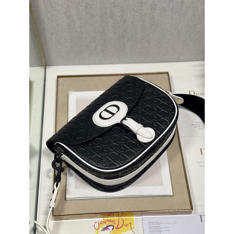 Made of calfskin. The removable, adjustable shoulder strap with military buckle can be carried by hand, over the shoulder or across the body.