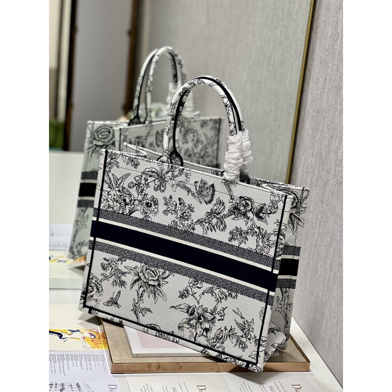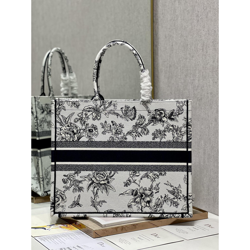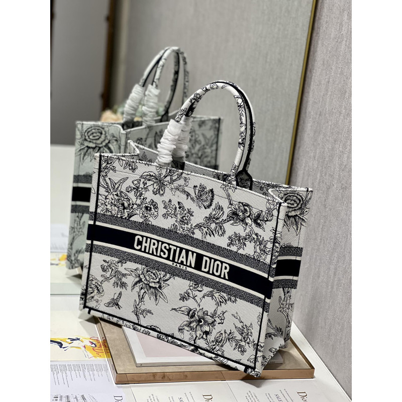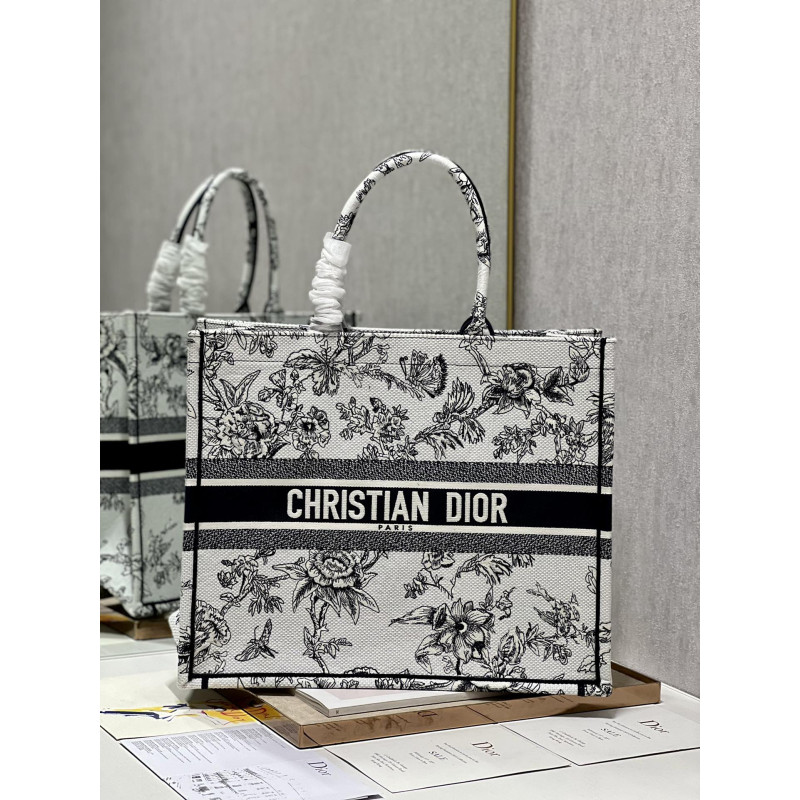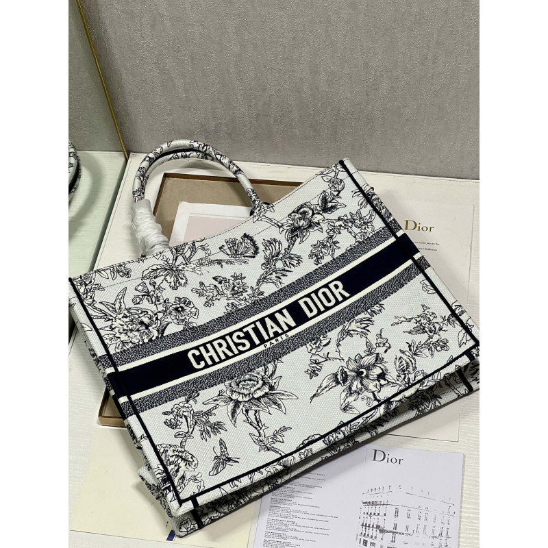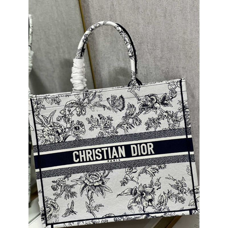Designed to hold all your daily essentials, it's fully embroidered with the Dior Jardin Botanique motif, showcasing the romantic floral motif of the Granville gardens. The Christian Dior Paris signature adorns the front, reflecting the house's signature craftsmanship.