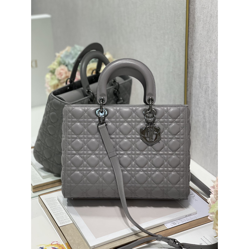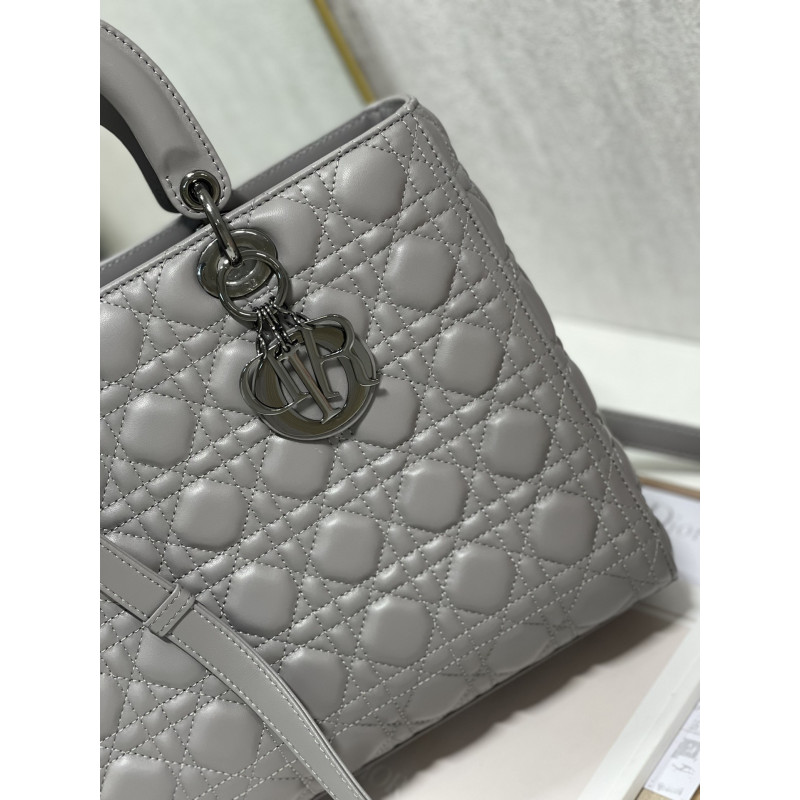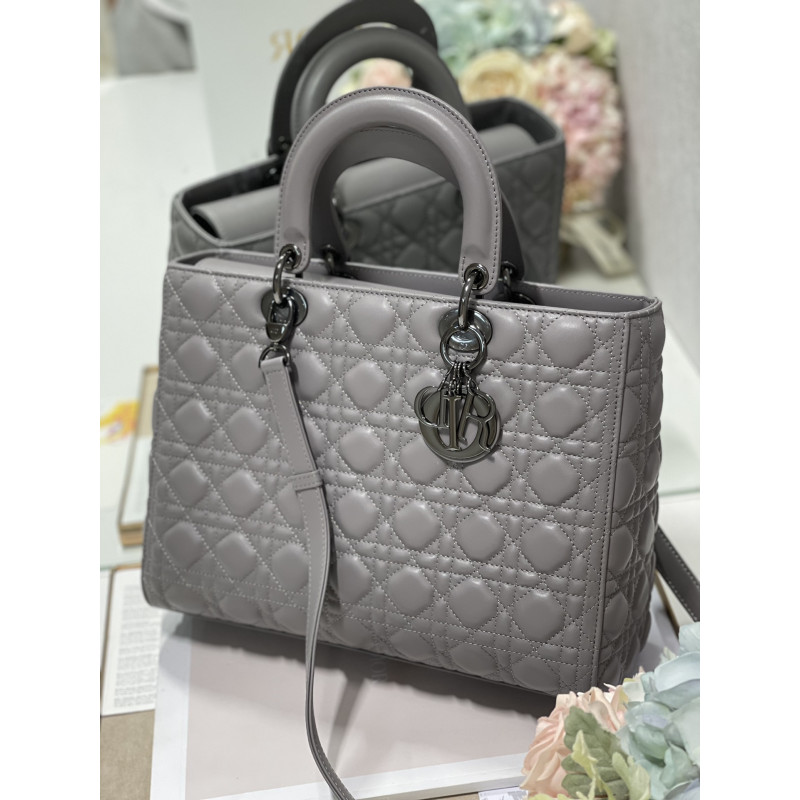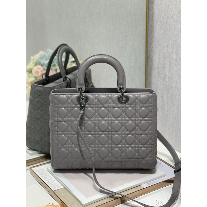 DetailCrafted from black lambskin with Cannage stitching for an instantly recognizable quilted texture. Internal zipper pocket, large patch pocket, with detachable and adjustable thin shoulder strap, the bag can be matched with different embroidered shoulder straps, can be carried by hand, on the shoulder or crossbody, making it an ideal evening companion.