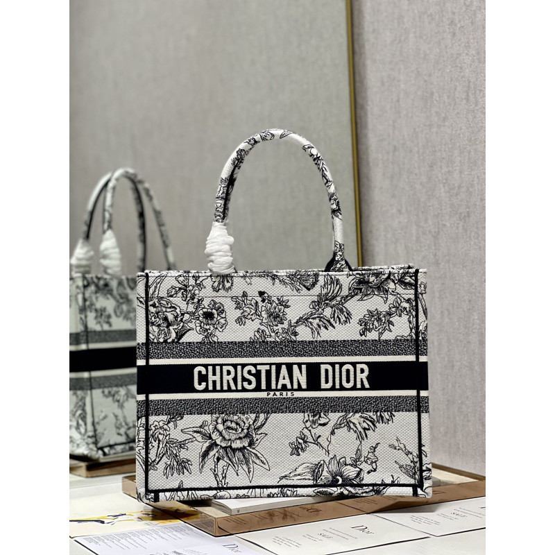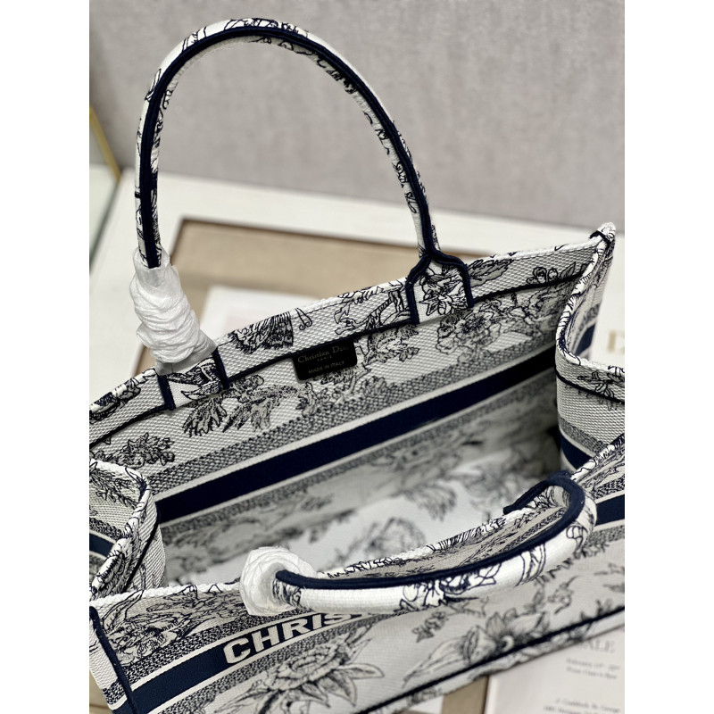 Designed to hold all your daily essentials, it's fully embroidered with the Dior Jardin Botanique motif, showcasing the romantic floral motif of the Granville gardens. The Christian Dior Paris signature adorns the front, reflecting the house's signature craftsmanship.