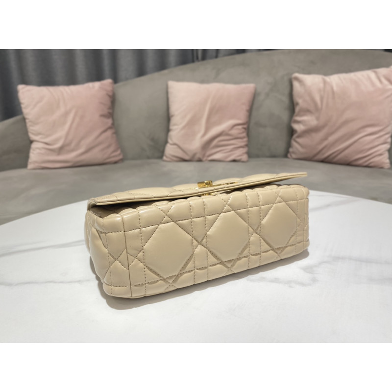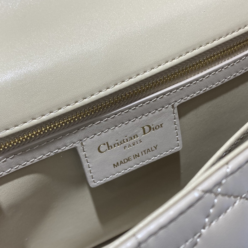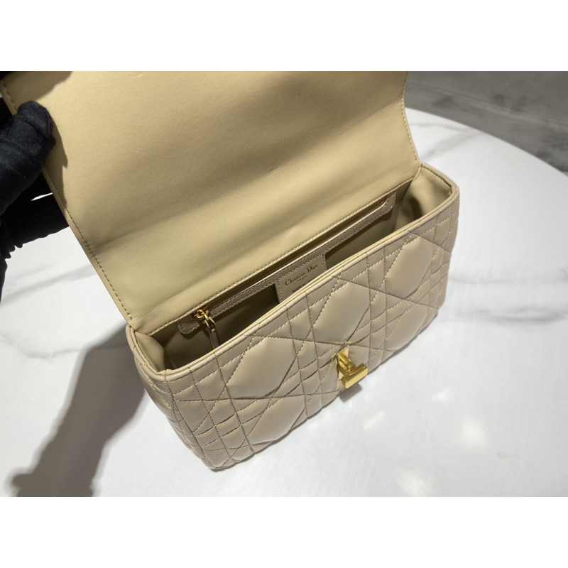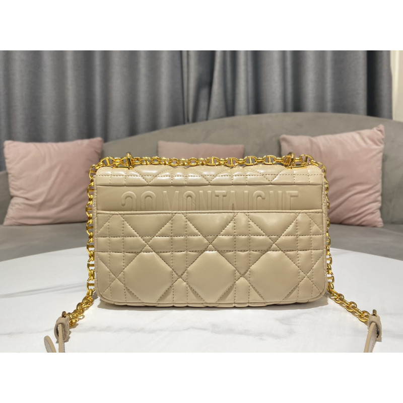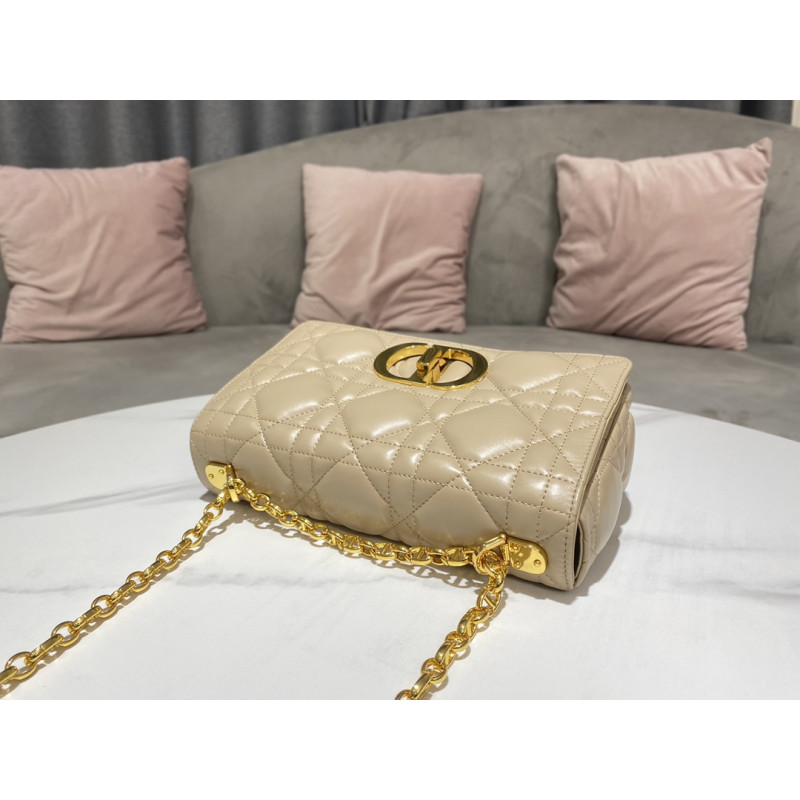 Made of calfskin with Cannage stitching. Fitted with flap, decorated with antique gold-plated metal 'CD' turnbuckle, adjustable and detachable 'CD' chain shoulder strap with 'CD' logo links, can be carried by hand or on the shoulder, can be matched with different embroidered shoulder straps.
