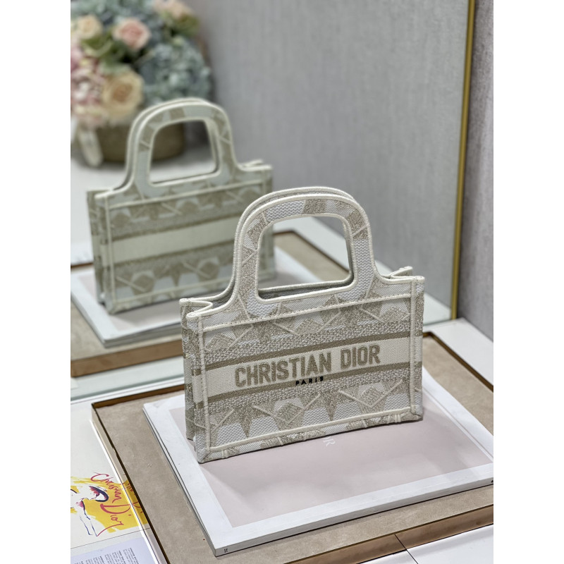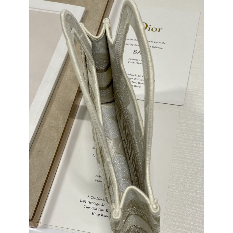 DetailFully embroidered with the Toile de Jouy motif and featuring the Christian Dior Paris signature on the front, this piece can be carried by hand and layered with other Dior Oblique creations.