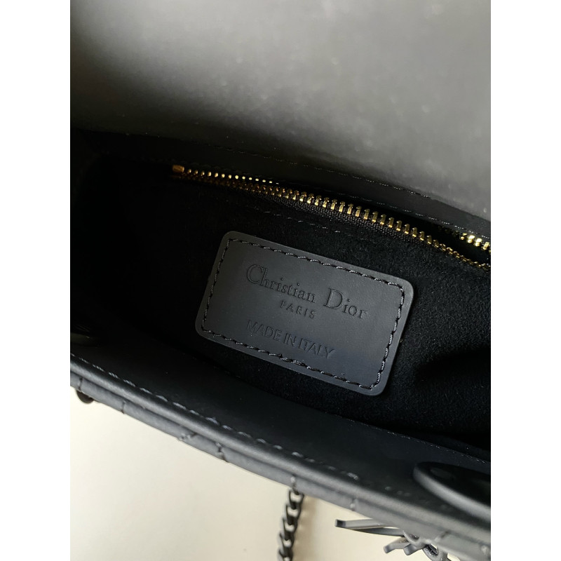 DetailCrafted from black matte calfskin with Cannage stitching for an instantly recognizable quilted texture. Internal zipper pocket, equipped with a detachable chain shoulder strap, which can be carried by hand, shoulder or crossbody, and can be matched with different embroidered shoulder straps, making it an ideal evening companion.
