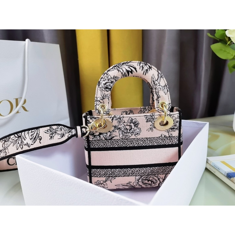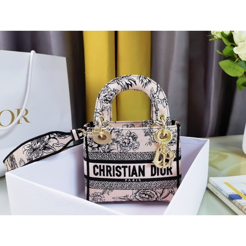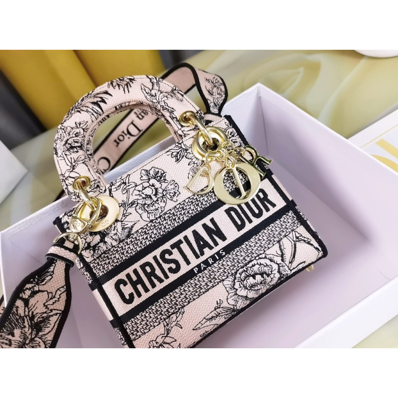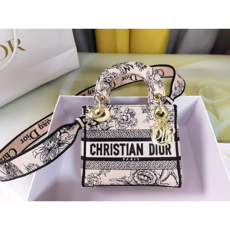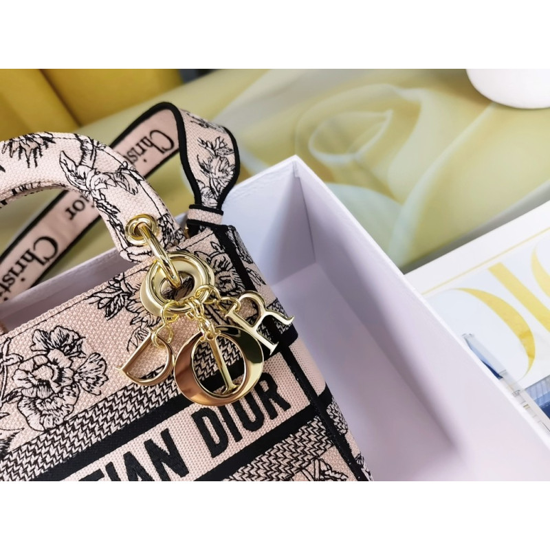 The 'CHRISTIAN DIOR PARIS' logo is embossed on the front, and it is equipped with a large double-sided detachable embroidered shoulder strap, which can be matched with different embroidered shoulder straps, and can be carried by hand or cross-body.