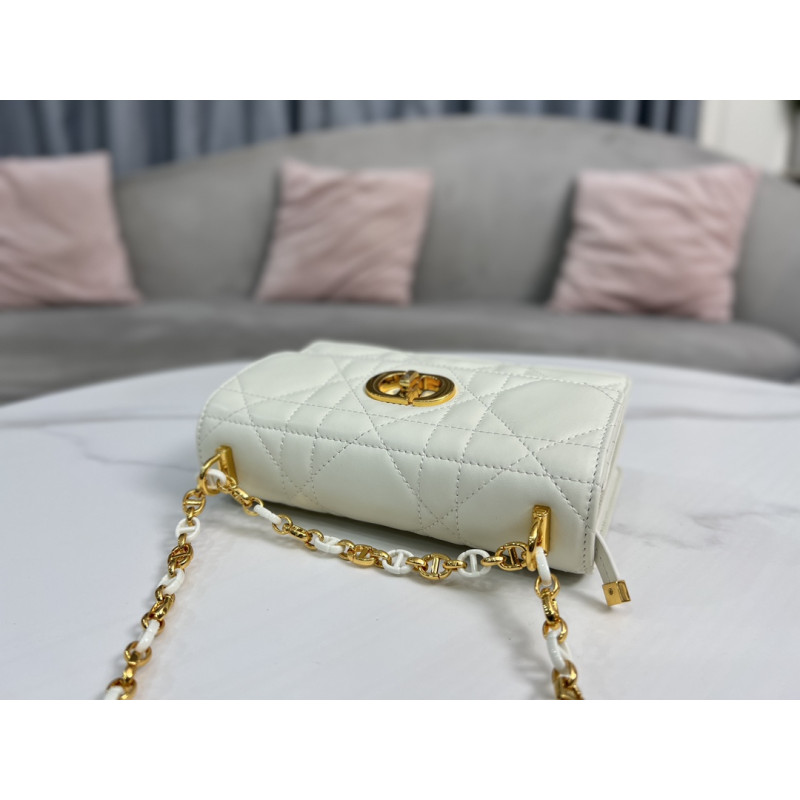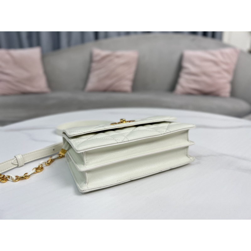 DetailMade of lambskin with unique quilted Macrocannage effect, gold-finish metal CD button closure on flap, adjustable chain shoulder strap between gold-finish metal links and tonal enamel links to match the leather alternates with leather inserts for added comfort when carried by hand or cross-body.