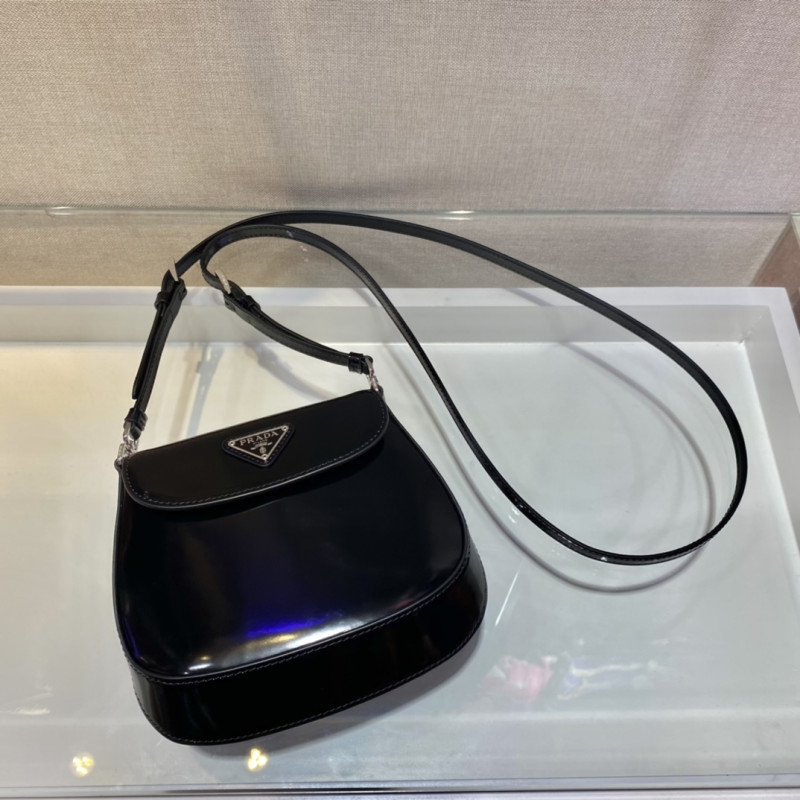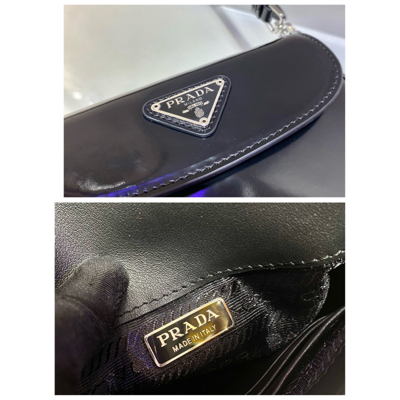 DetailThe special beveled structure of the bottom and sides of this flap bag emphasizes the smooth curved lines and gives it a sophisticated appeal, while the extended handles make it even more functional, allowing it to be worn as a shoulder bag or a tote. Brushed leather, unique to the Prada collection, is a modern, color-changing material perfect for new combinations and contrasts. A triangular enameled logo completes the silhouette.