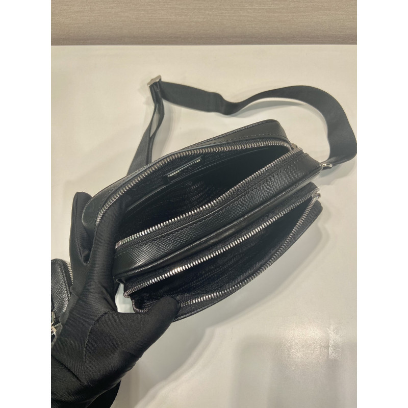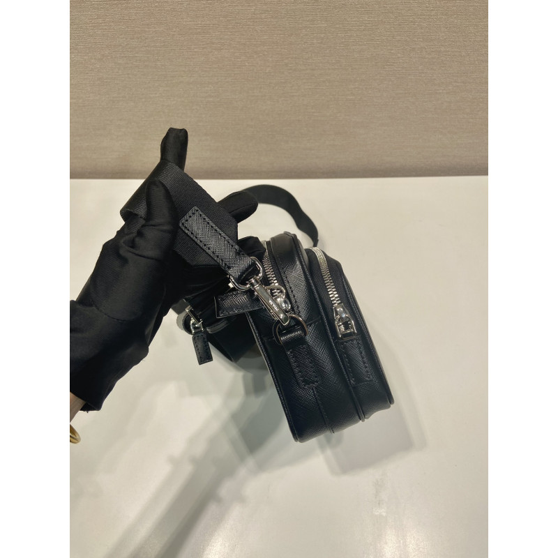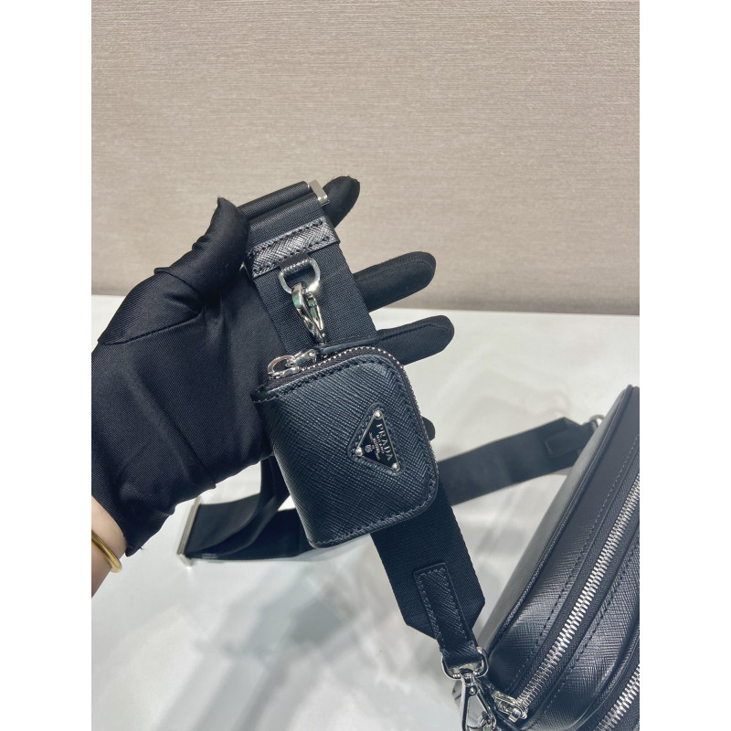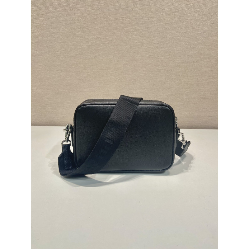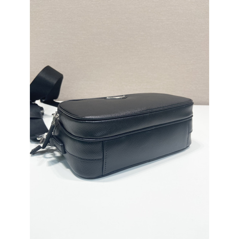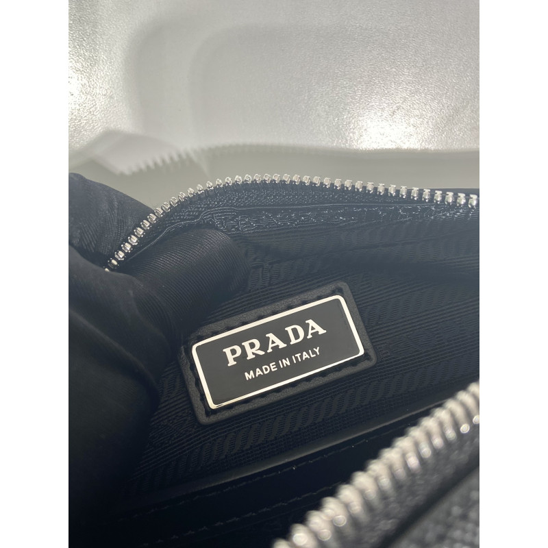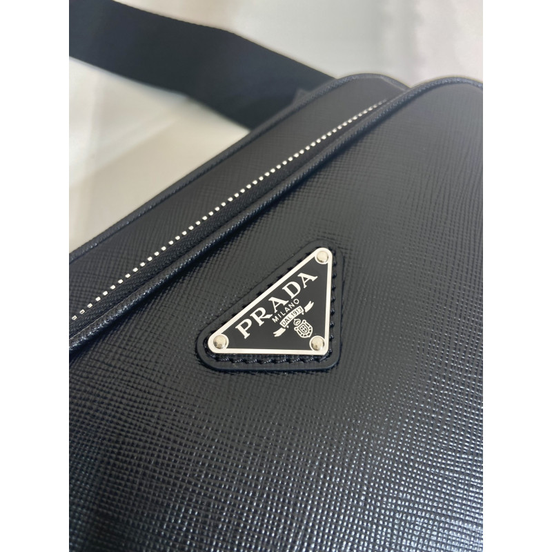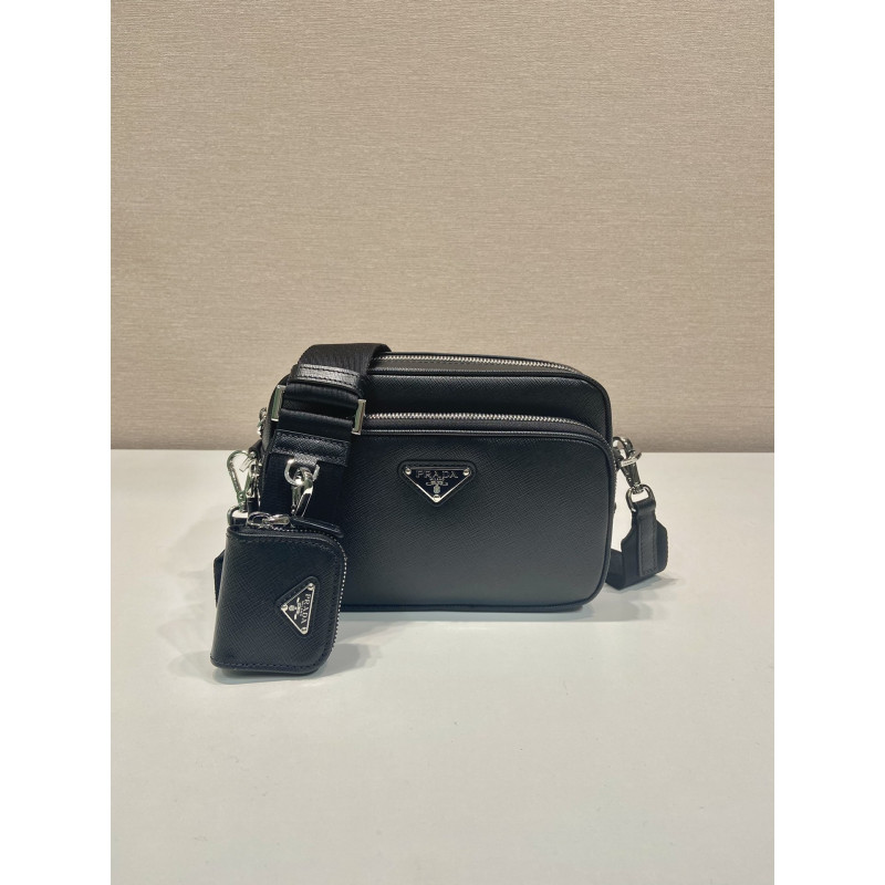 Crafted from Saffiano leather, the simple lines of this shoulder bag make a striking statement. The iconic Saffiano leather is synonymous with opulence and a status symbol of traditional Italian leather craftsmanship. Featuring a removable leather pouch and enameled triangle label, it is finished with a long, removable and adjustable nylon shoulder strap for added simplicity and style.