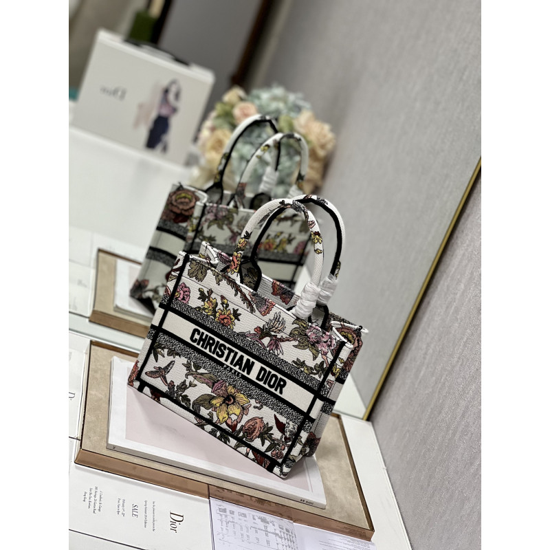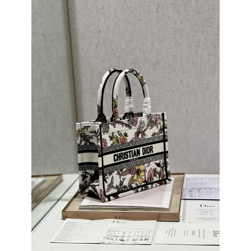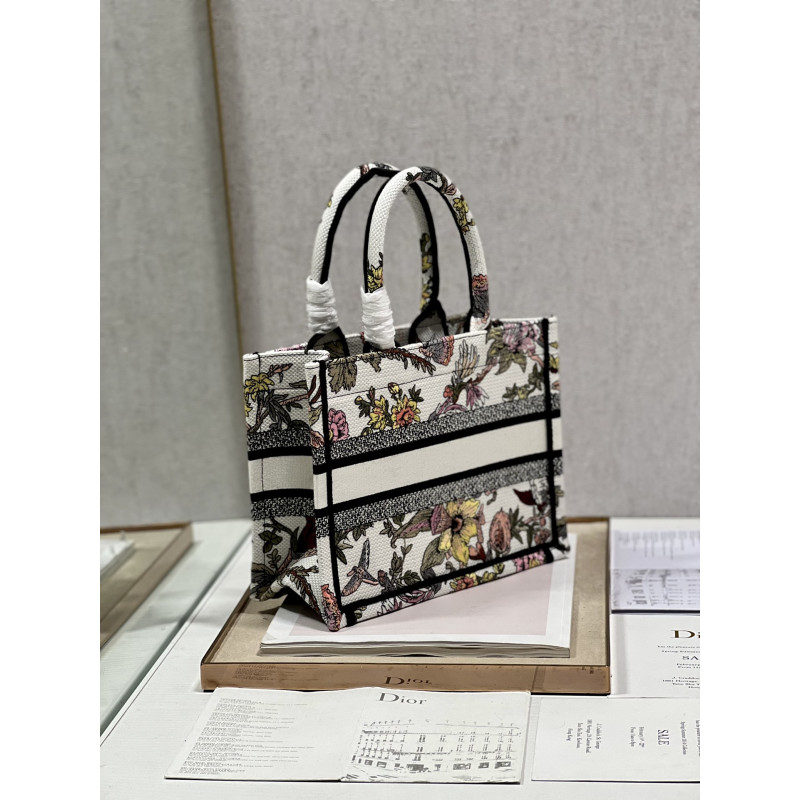 Designed to hold all your daily essentials, it's fully embroidered with the Dior Jardin Botanique motif, showcasing the romantic floral motif of the Granville gardens. The Christian Dior Paris signature adorns the front, reflecting the house's signature craftsmanship.