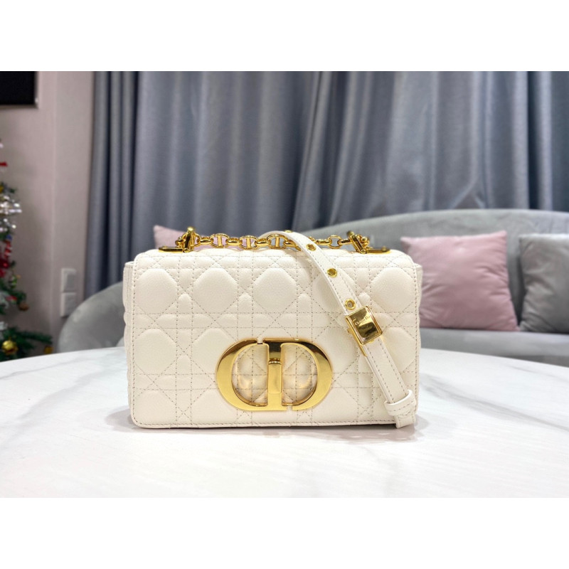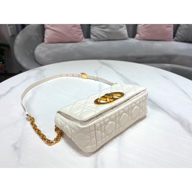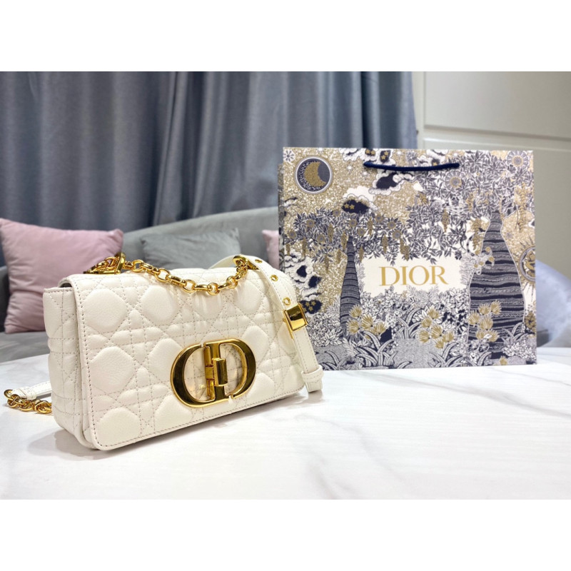 DetailCrafted from calfskin with Cannage stitching. Antique gold-plated metal 'CD' button on the flap, adjustable and detachable chain shoulder strap with 'CD' logo links, can be carried by hand, shoulder or crossbody, and can be matched with different embroidered shoulder straps.
