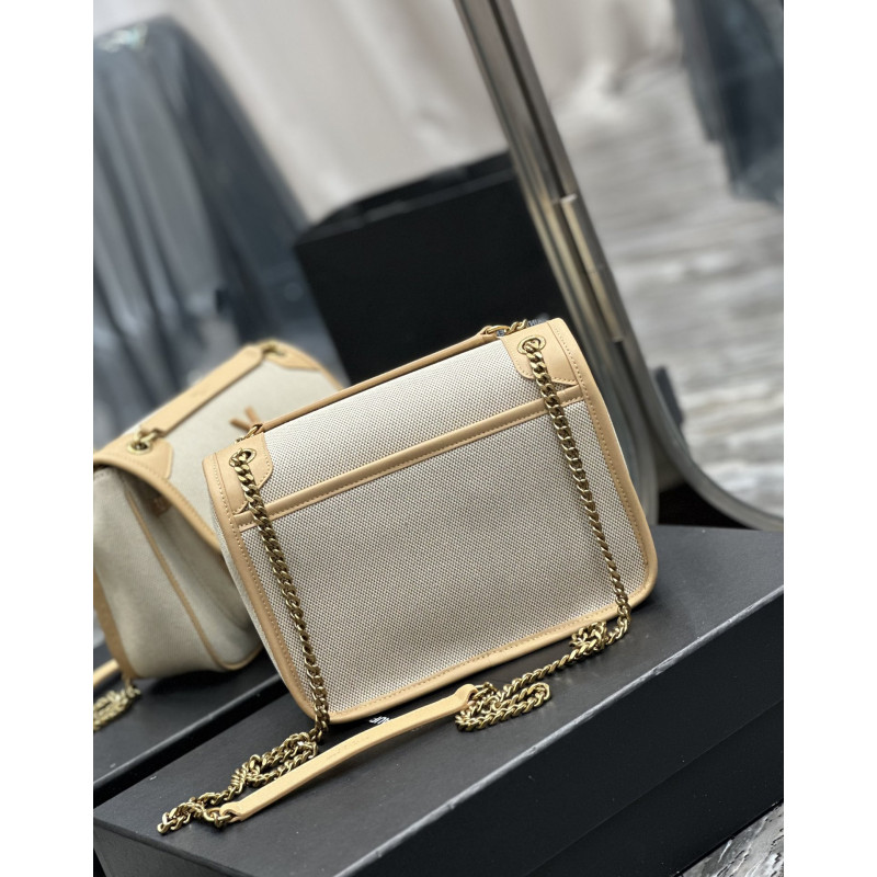 DetailFront flap with magnetic snap closure and signature YSL signature covered in leather. Exterior: 1 rear flat pocket, Interior: 1 main compartment, 1 flat pocket, 1 pocket under the flap, leather lining.
