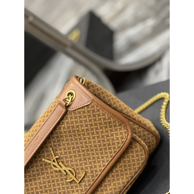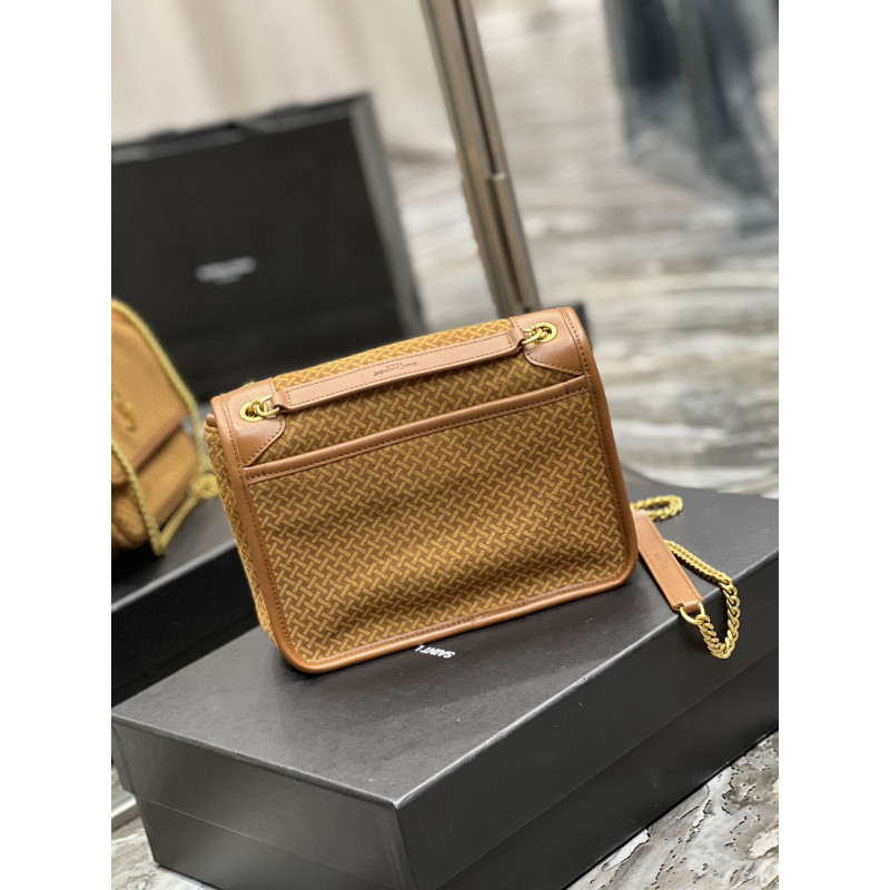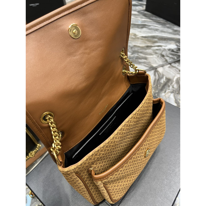 DetailFront flap with magnetic snap closure and signature YSL signature covered in leather. Exterior: 1 rear flat pocket, Interior: 1 main compartment, 1 flat pocket, 1 pocket under the flap, leather lining.