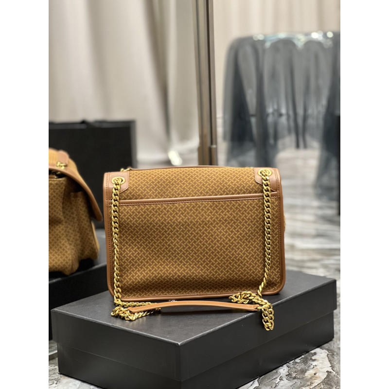 DetailFront flap with magnetic snap closure and signature YSL signature covered in leather. Chain and leather convertible shoulder strap, exterior: a magnetic pocket on the back, interior: 1 main compartment, 1 open pocket, 1 zip pocket, 1 pocket under the flap.