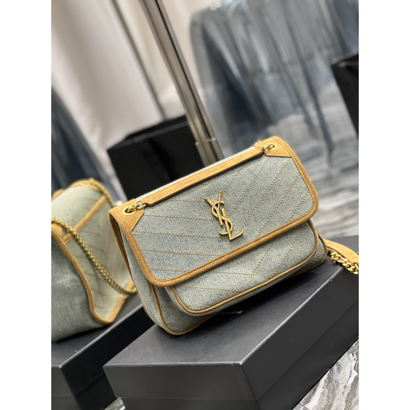 DetailFront flap with magnetic snap closure and signature YSL signature covered in leather. Chain and leather convertible shoulder strap, exterior: a magnetic pocket on the back, interior: 1 main compartment, 1 open pocket, 1 zip pocket, 1 pocket under the flap.